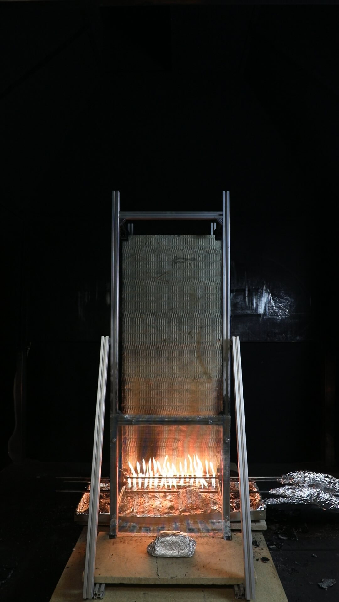 This experiment is on a system consisting of an Oriented Strand Board (OSB) cladding panel and a Mineral Wool (MW) insulation panel, separated with a cavity of 50 mm width. It is the second repetition of this system configuration.