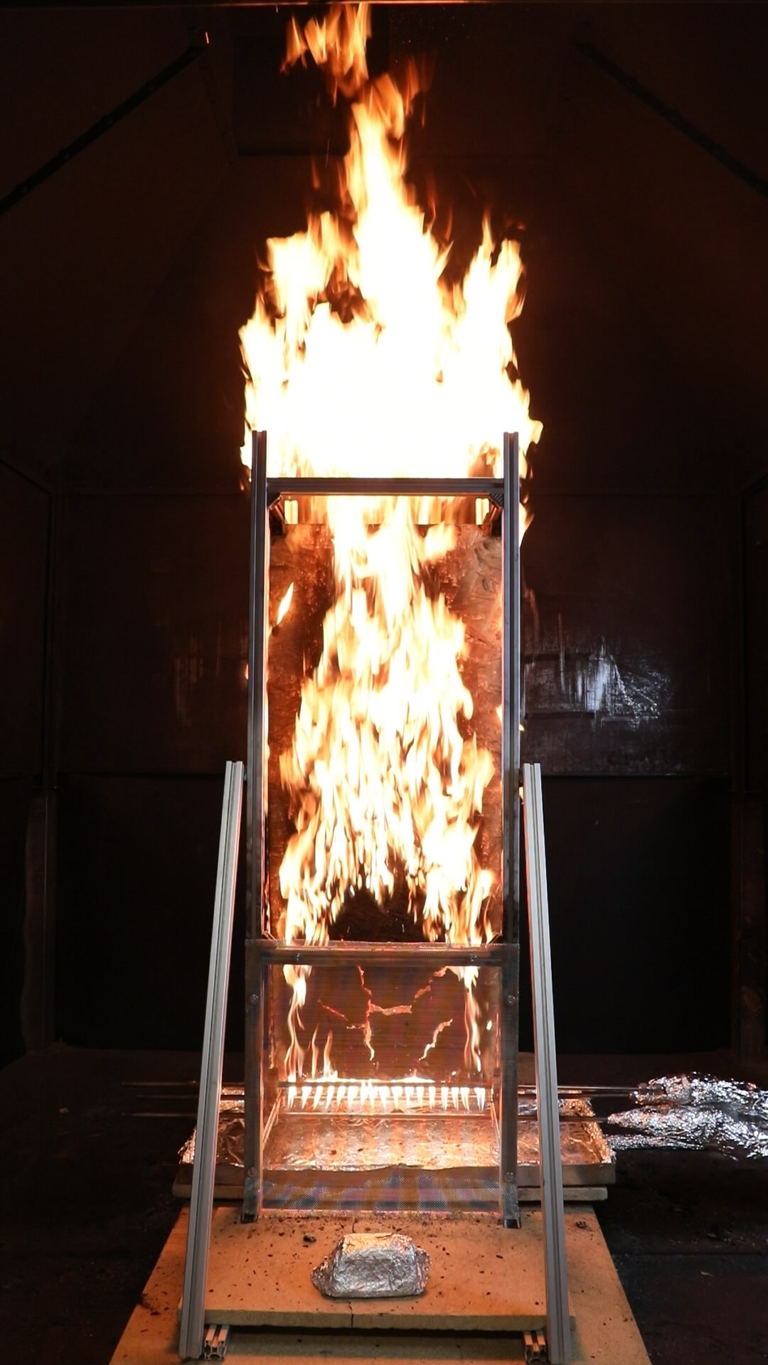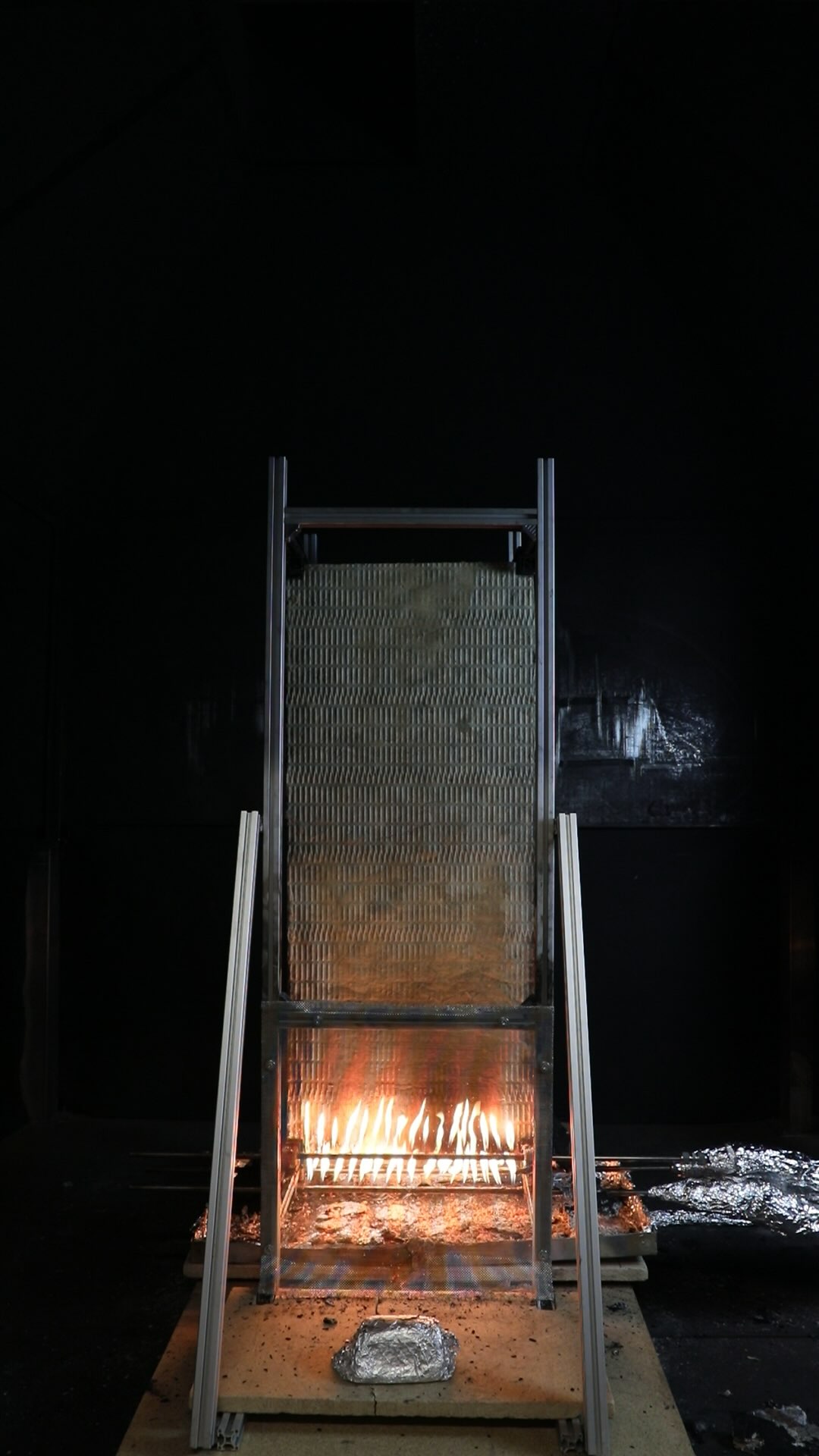 At approximately 5 minutes the OSB panel began to touch the insulation panel, affecting the mass measurements. At approximately 8 minutes the OSB panel began to collapse, causing a sudden change in the mass measurements as debris fell into the debris tray, onto both load cells, or off the entire assembly.