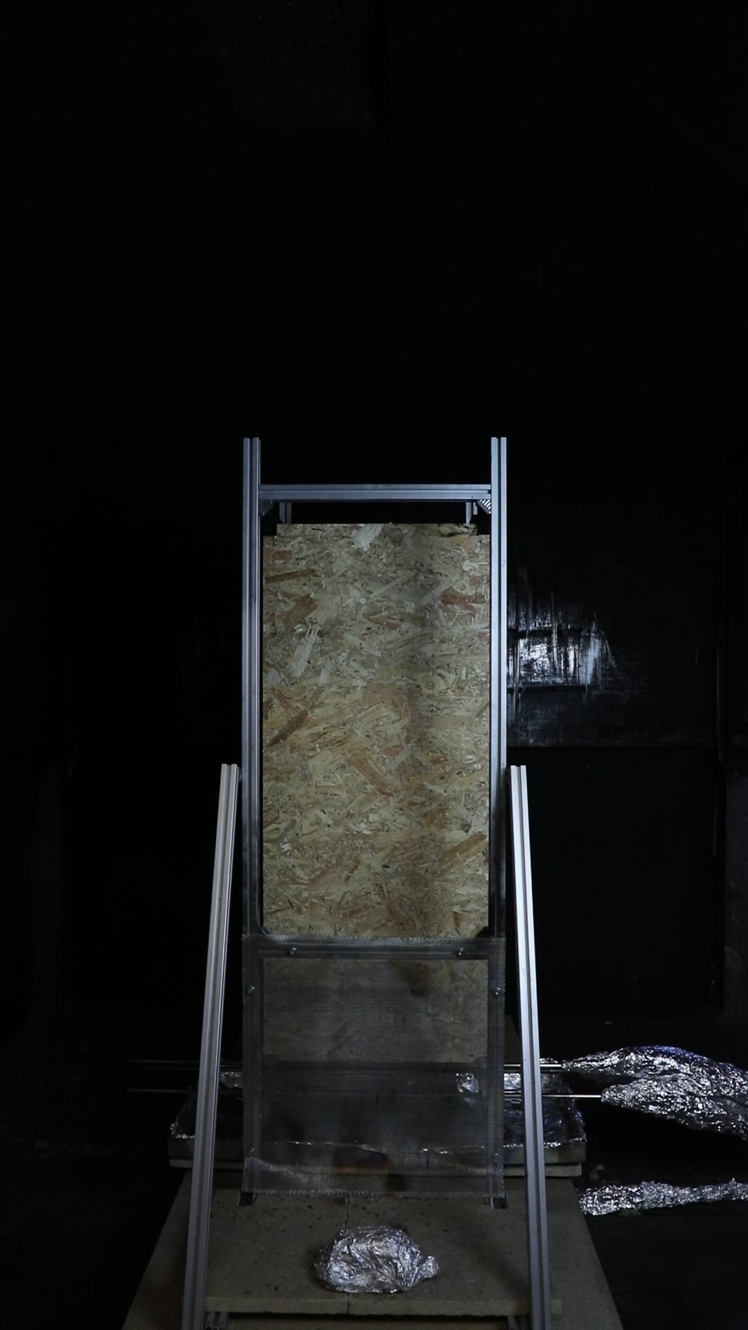 This experiment is on a system consisting of an Oriented Strand Board (OSB) cladding panel and a Mineral Wool (MW) insulation panel, separated with a cavity of 50 mm width. It is the third repetition of this system configuration.