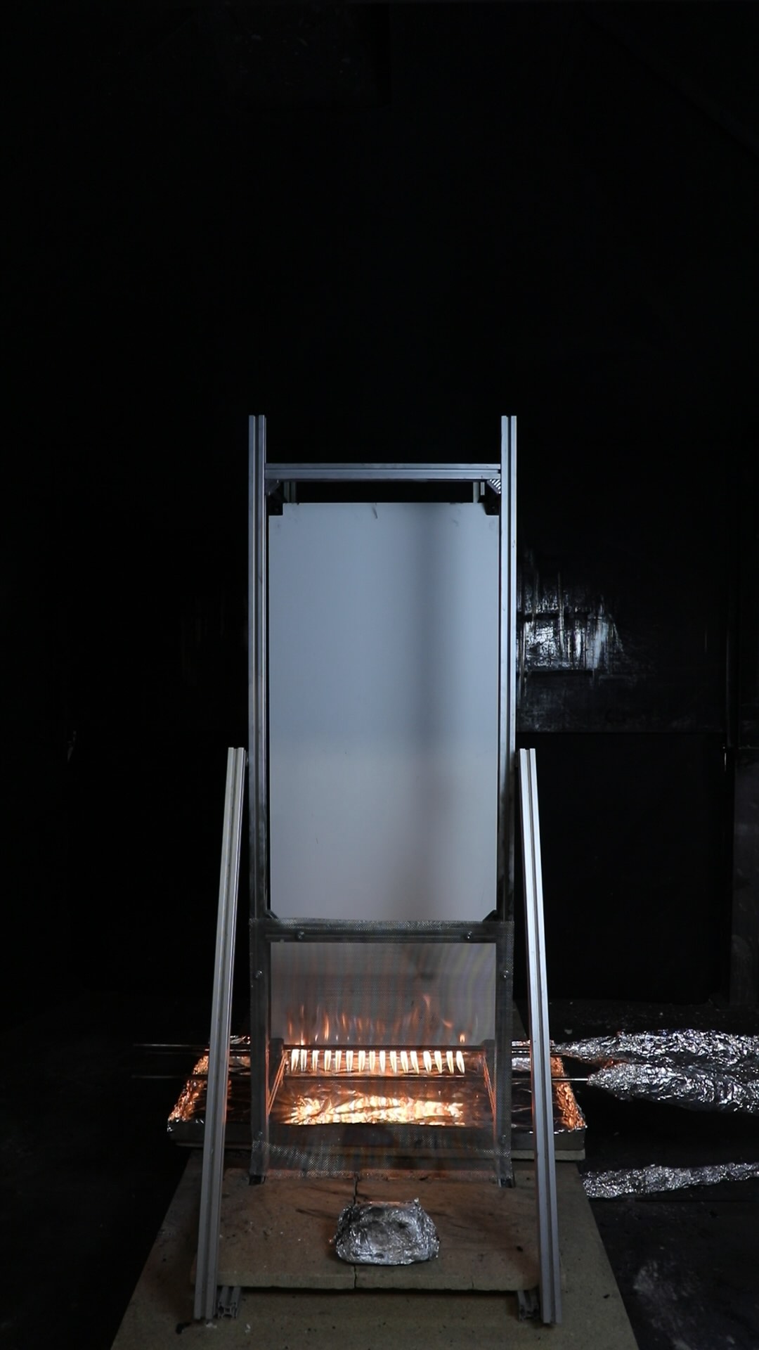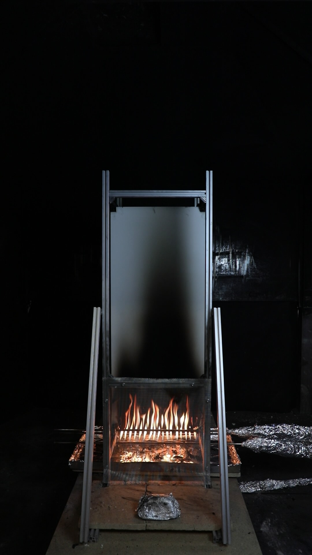 This experiment is on a system consisting of an Aluminium Composite Material (ACM) A2 cladding panel and a Polyisocyanurate (PIR) foam insulation panel, separated with a cavity of 50 mm width. It is the first repetition of this system configuration.