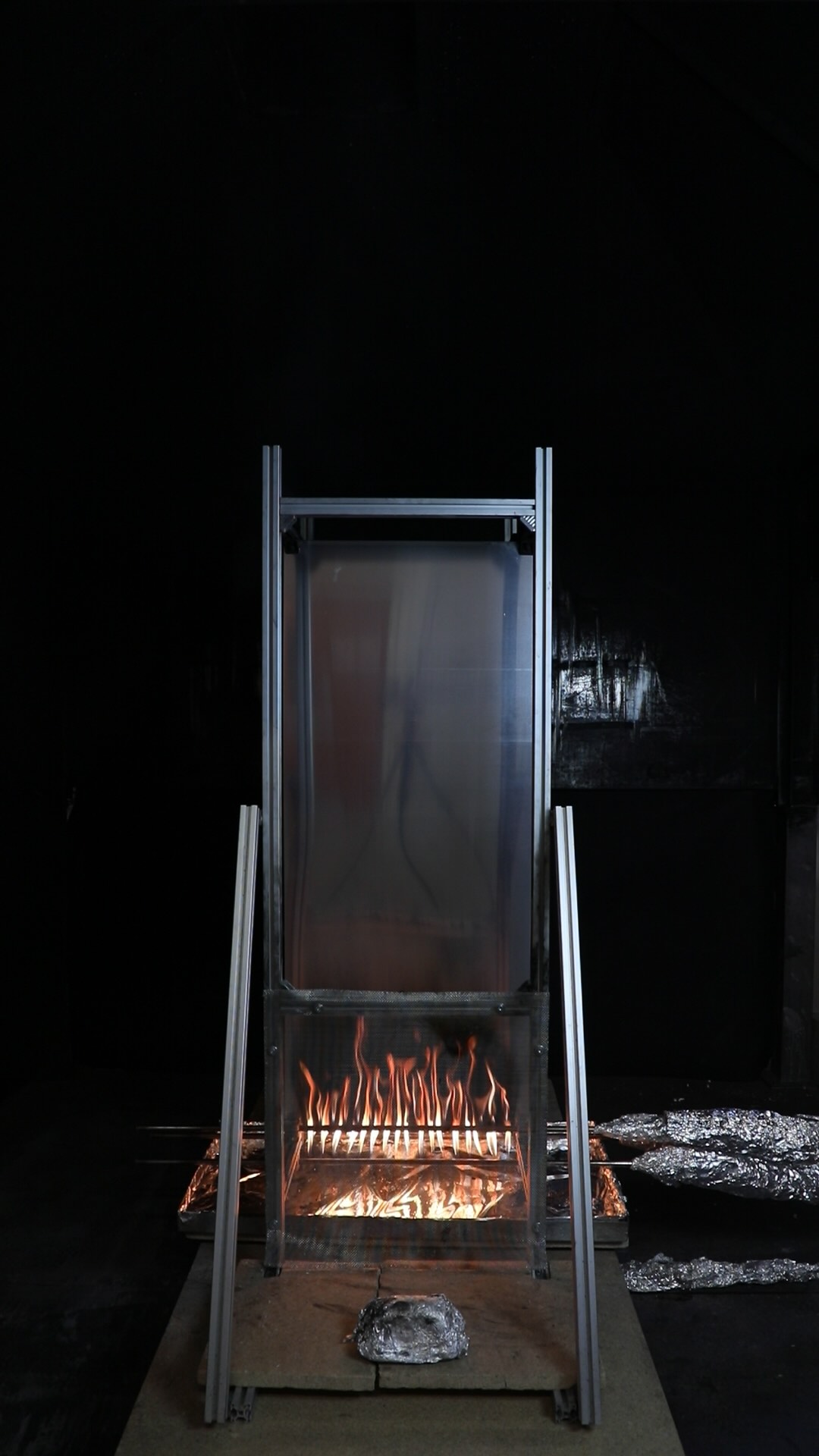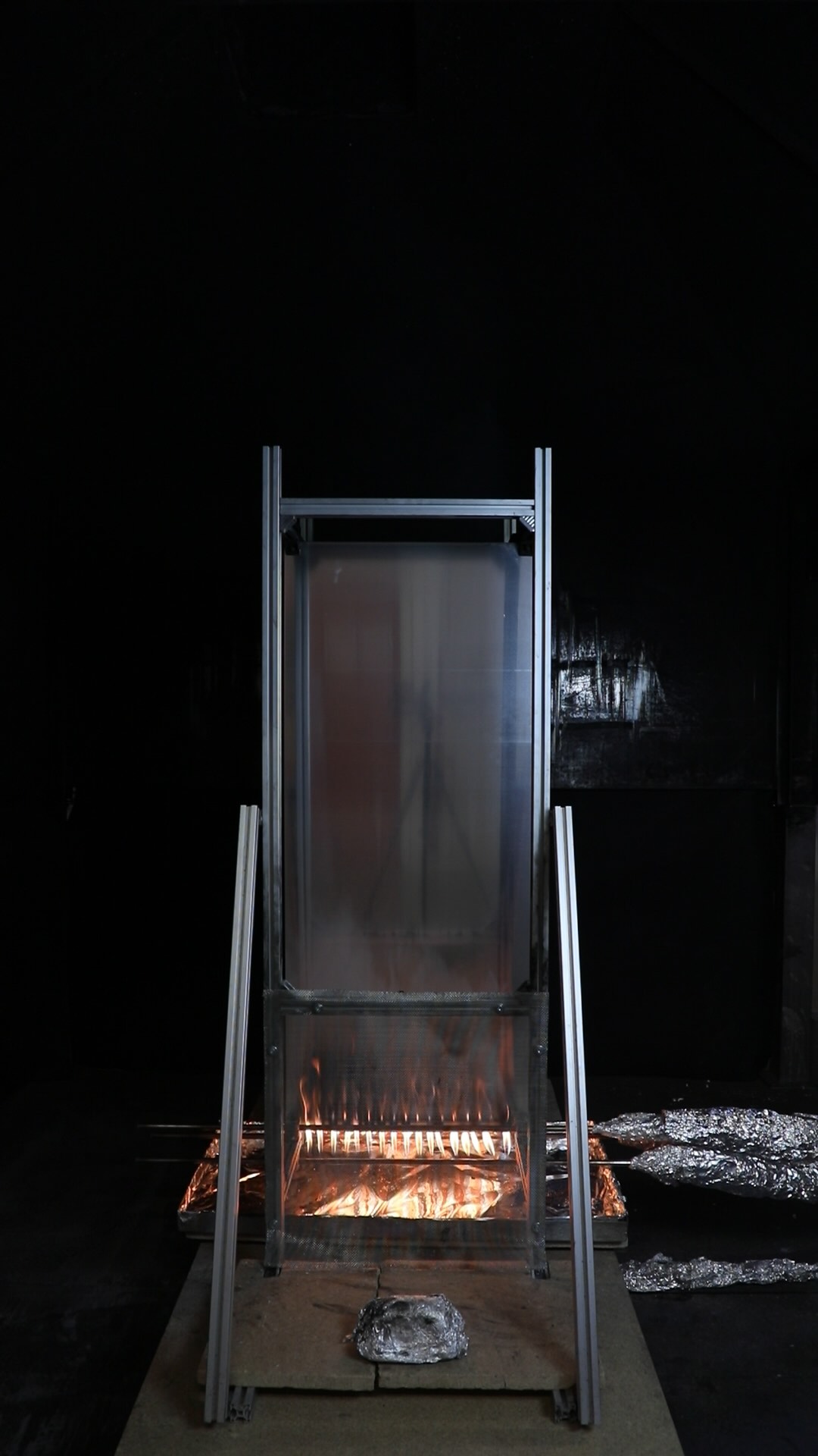 This experiment is on a system consisting of an Aluminium cladding panel and a Polyisocyanurate (PIR) foam insulation panel, separated with a cavity of 50 mm width. It is the second repetition of this system configuration.