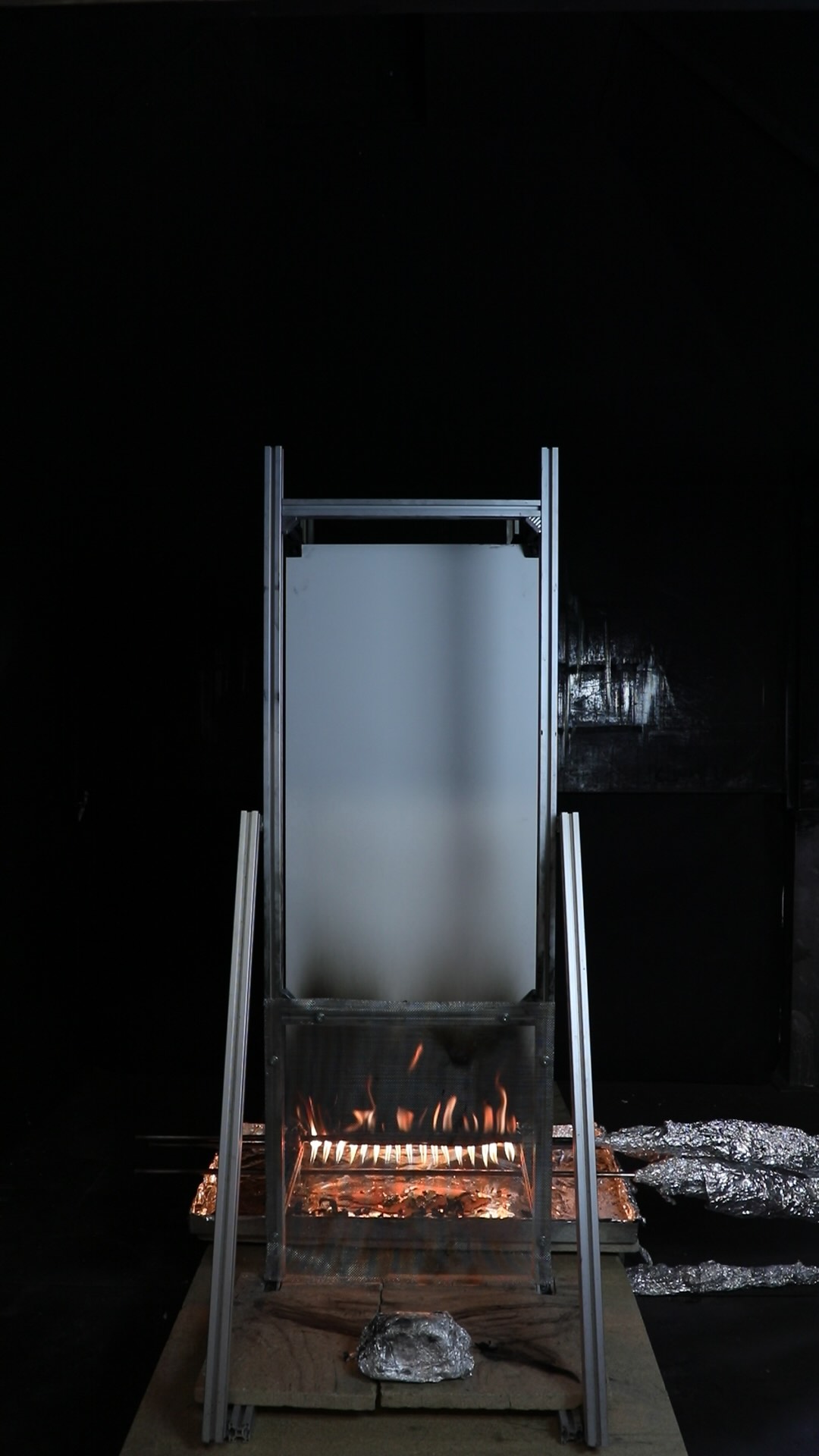 This experiment is on a system consisting of an Aluminium Composite Material (ACM) A2 cladding panel and a Polyisocyanurate (PIR) foam insulation panel, separated with a cavity of 50 mm width. It is the third repetition of this system configuration.