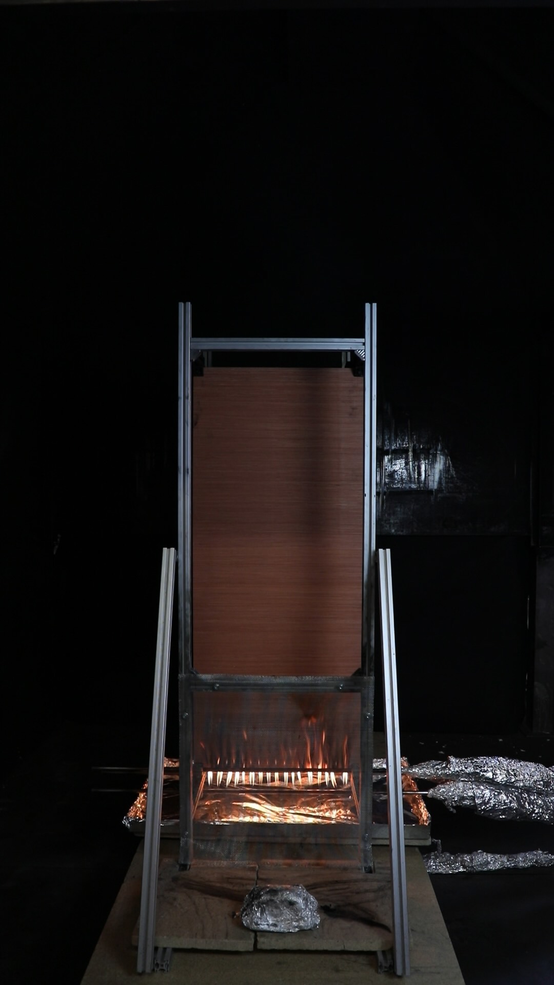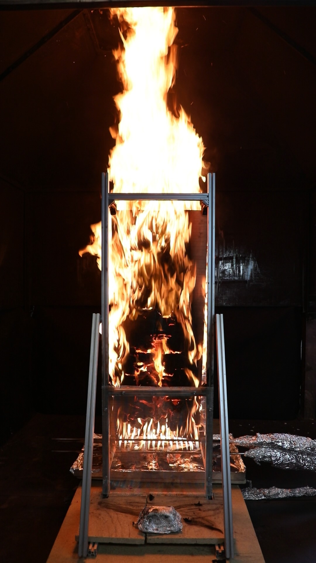 This experiment is on a system consisting of a Plywood cladding panel and a Polyisocyanurate (PIR) foam insulation panel, separated with a cavity of 50 mm width. It is the third repetition of this system configuration.