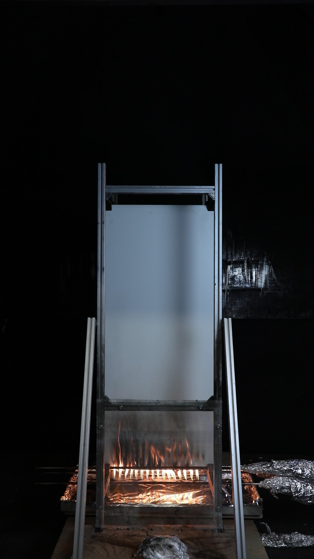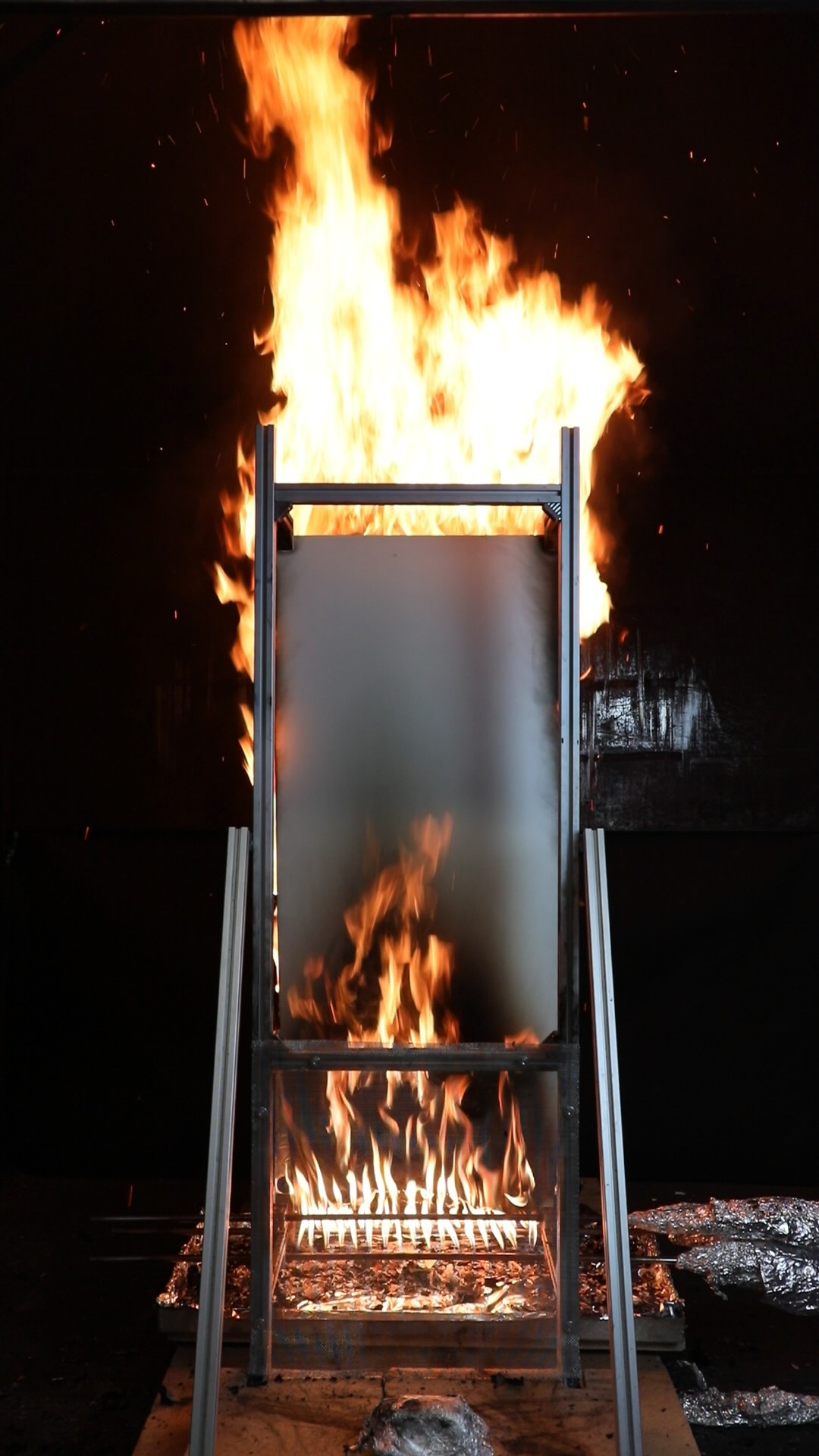 At approximately 6 minutes the HPL panel began to touch the insulation panel, affecting the mass measurements. At approximately 12 mins the cladding panel collapsed, causing the production of a significant amount of smoke.