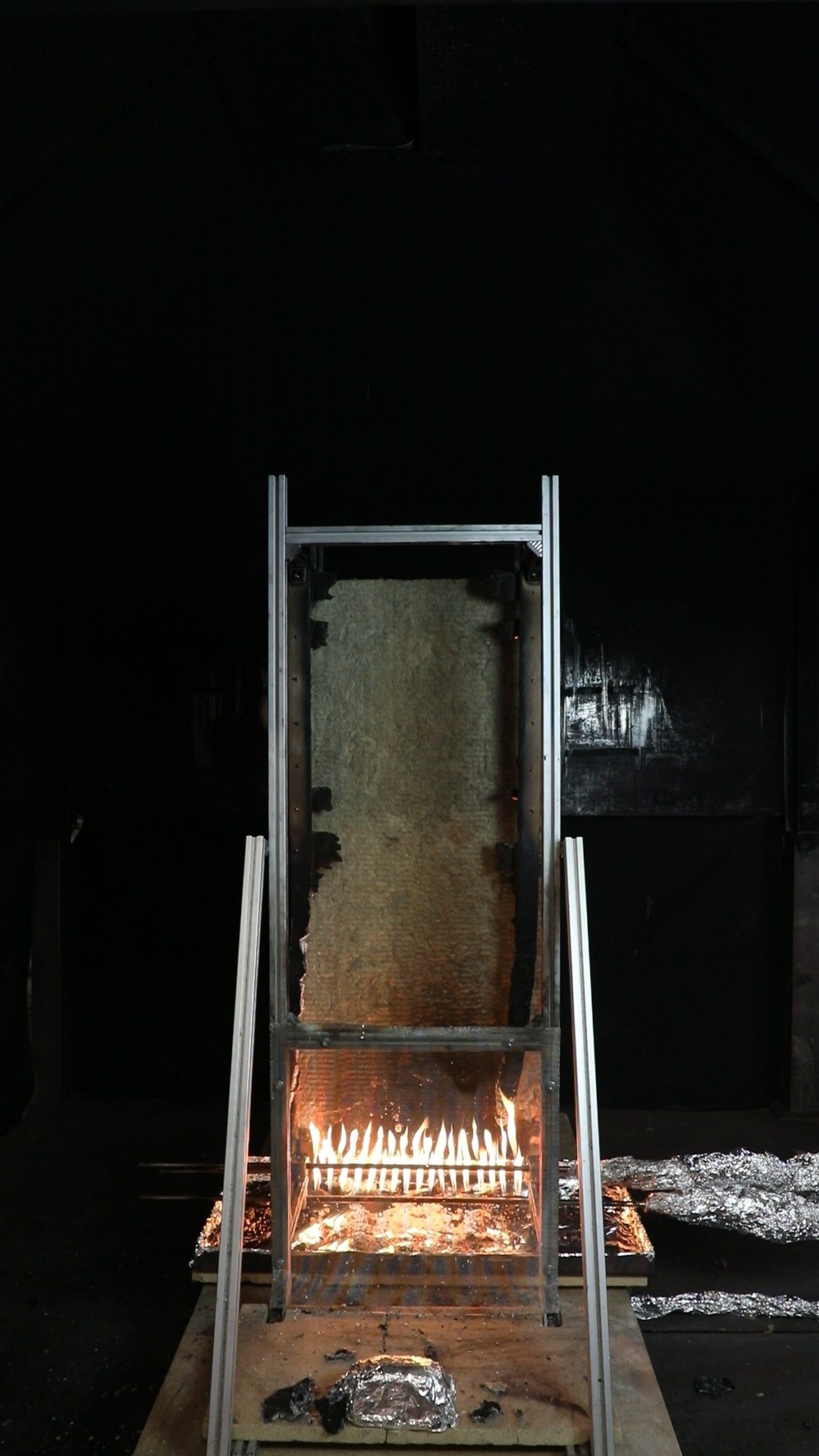 This experiment is on a system consisting of a Cedar Wood cladding panel and a Mineral Wool (MW) insulation panel, separated with a cavity of 50 mm width. It is the second repetition of this system configuration.