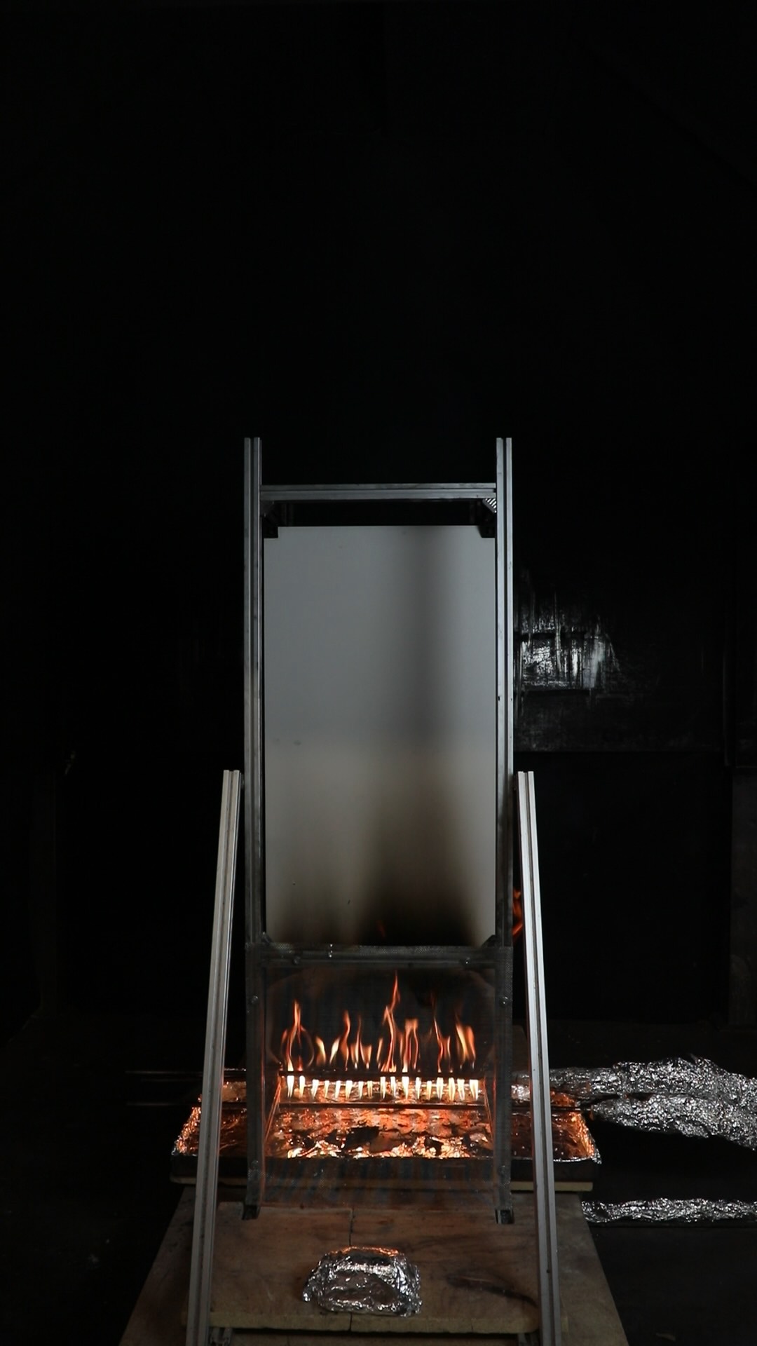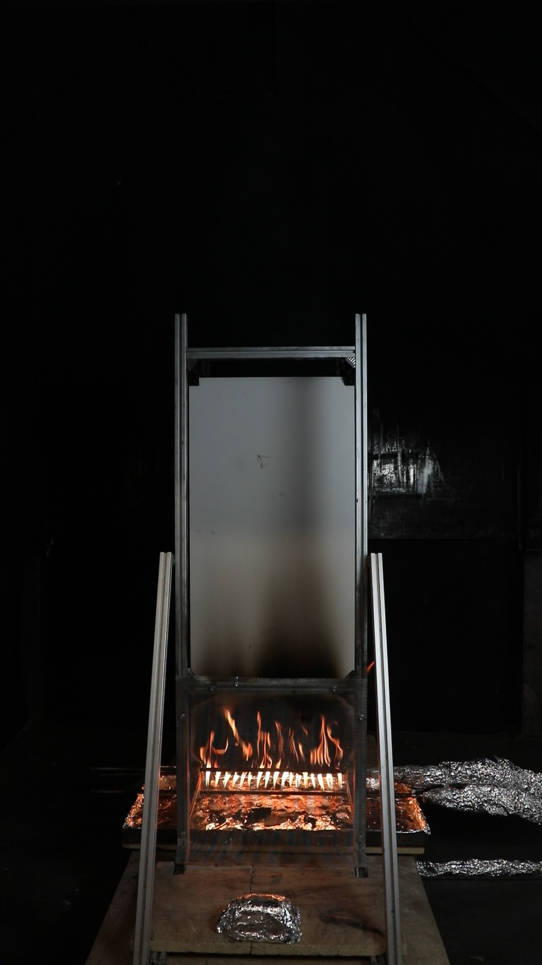 At approximately 5 minutes some of the core material fell out of the ACM A2 panel, causing a sudden change in the mass measurements as debris fell into the debris tray. At approximately 11 minutes the ACM A2 panel began to touch the insulation panel, affecting the mass measurements. Smouldering in the Phenolic foam insulation was seen to propagate at the end of the experiment. Smouldering propagation continued after the experiment was terminated, requiring extinguishment.