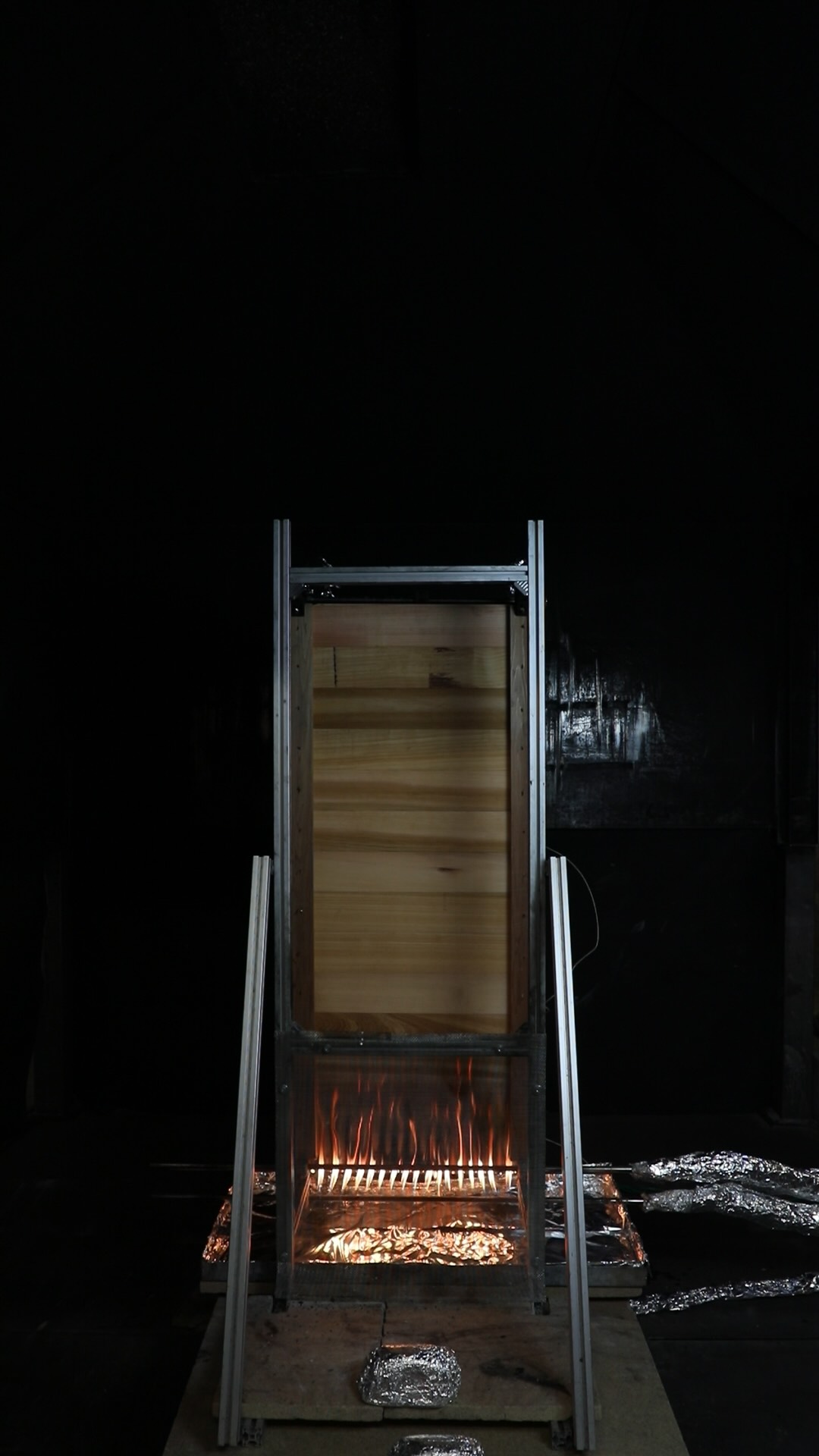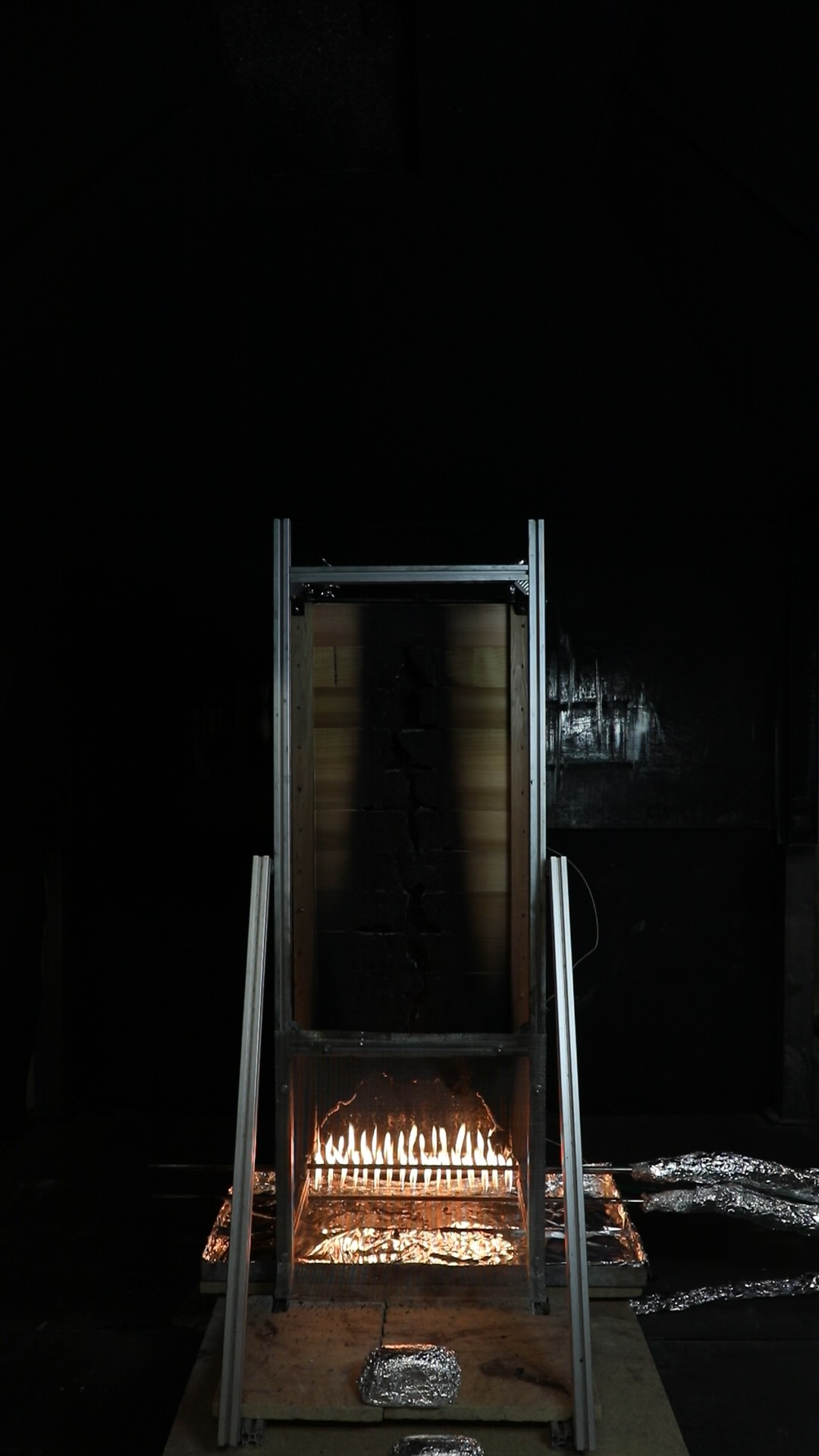 This experiment is on a system consisting of a Cedar Wood cladding panel and a Water-cooled steel plate insulation panel, separated with a cavity of 50 mm width. It is the second repetition of this system configuration.