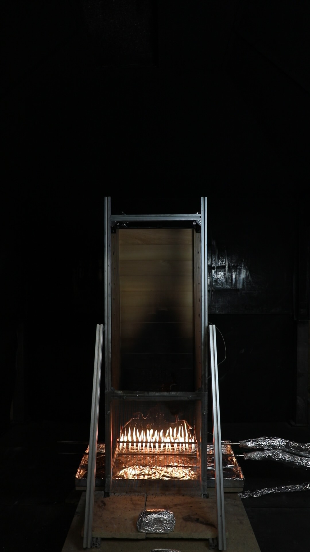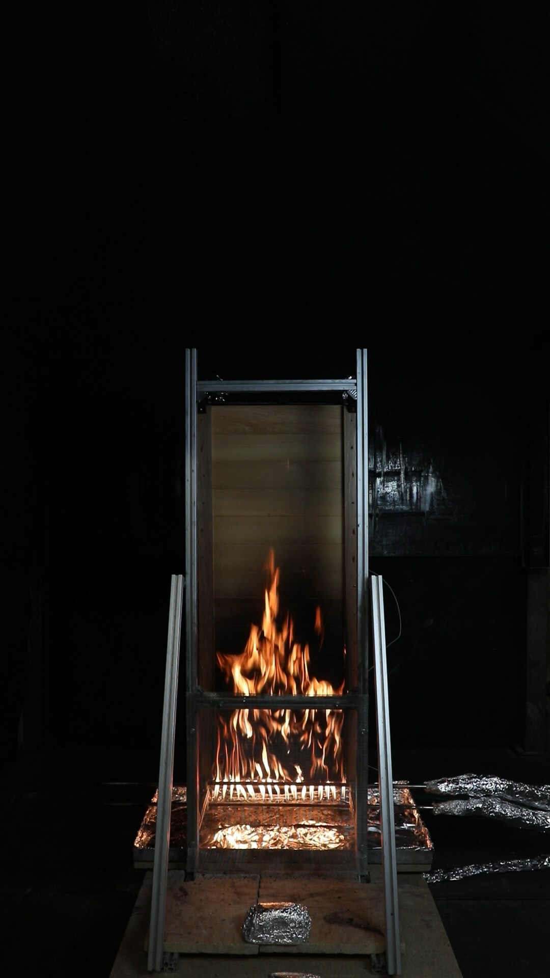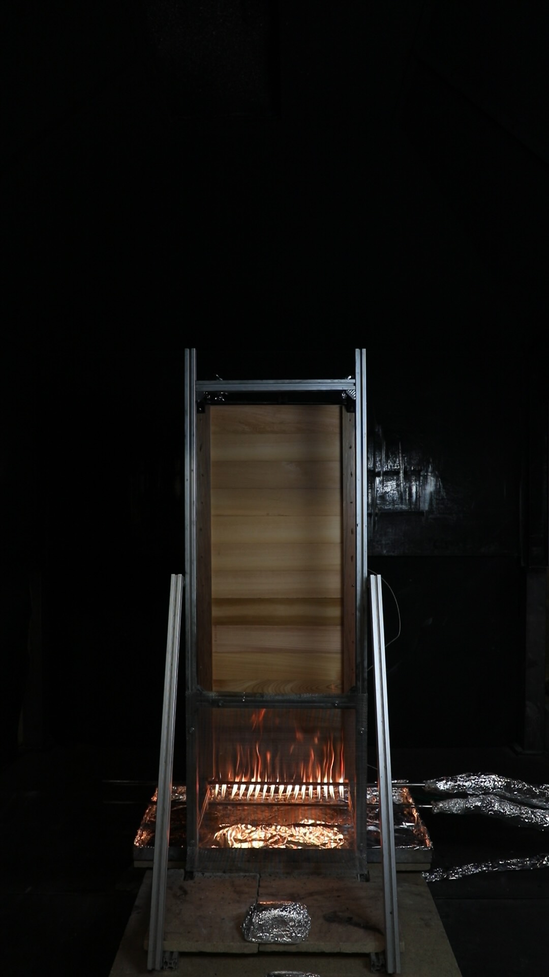 This experiment is on a system consisting of a Cedar Wood cladding panel and a Water-cooled steel plate insulation panel, separated with a cavity of 50 mm width. It is the third repetition of this system configuration.