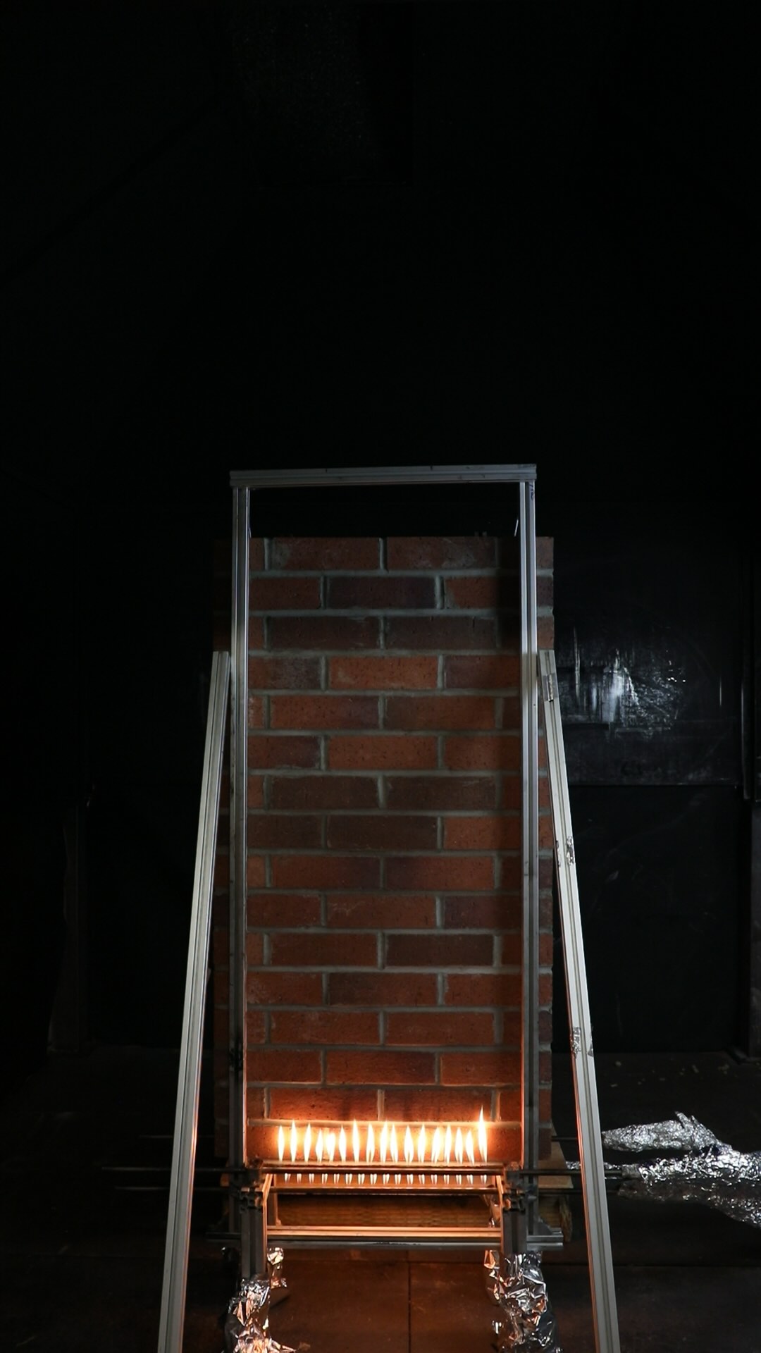 This experiment is on a system consisting of a Brick cladding and a Mineral Wool (MW) insulation panel, separated with a cavity of 50 mm width. It is the first repetition of this system configuration.